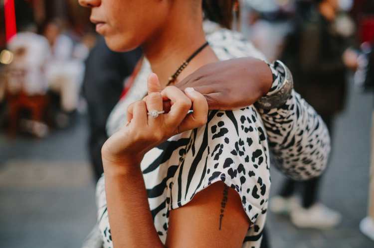 We got engaged in Vietnam last year, then when we came back to London, we had a photoshoot walking down the streets of Shoreditch, East London. This was when we had a brief period after the lockdown where we could go out during the summer, so we were very glad to be out and about. We felt free because there wasn’t a lot of people outside. We felt free and liberated, because we were just being ourselves. These photos represent just love really. But then visibility as well because we’re both queer women of colour and it’s just kind of a celebration of us. So every time I look at the photos, it just reminds me of like this liberation of our love. And I guess, also commitment to one another.