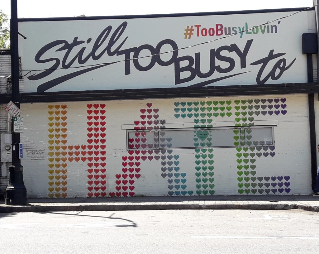 This photo is of downtown Atlanta, the gay area of Atlanta. It’s a real dichotomy. Because it’s deep south America, there’s a lot of very right-wing attitudes and opinions. You don’t have to drive through Georgia to see the Confederate flag. There’s racism, and sexism, and every other -ism that you can think of there. It’s very, very divided. But this was a little pocket of gay acceptance and love in the middle of this quite bustling city.